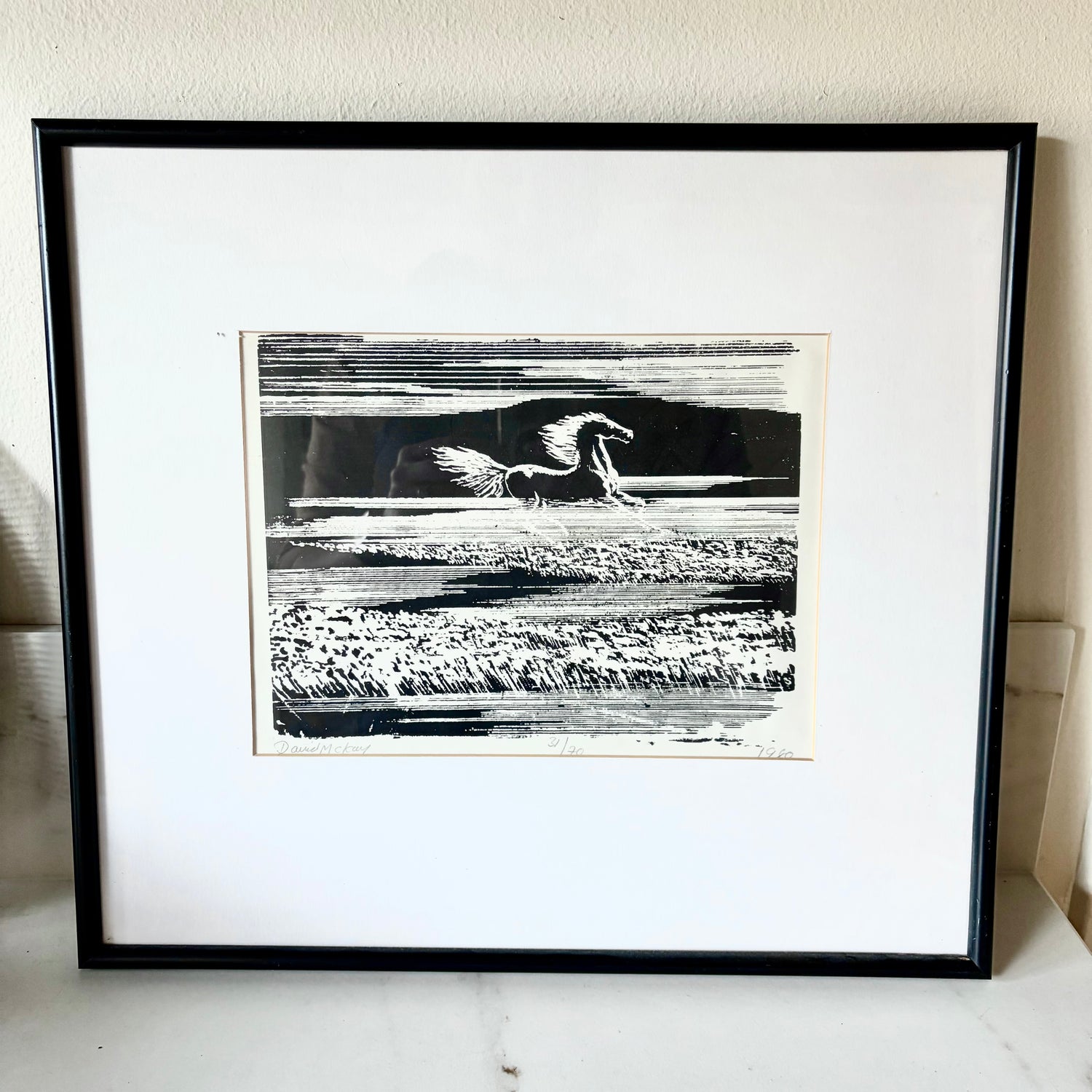 David McKay — Galloping Horse, Linocut/Woodblock Print, 31/70, 1980 — Framed Original Art