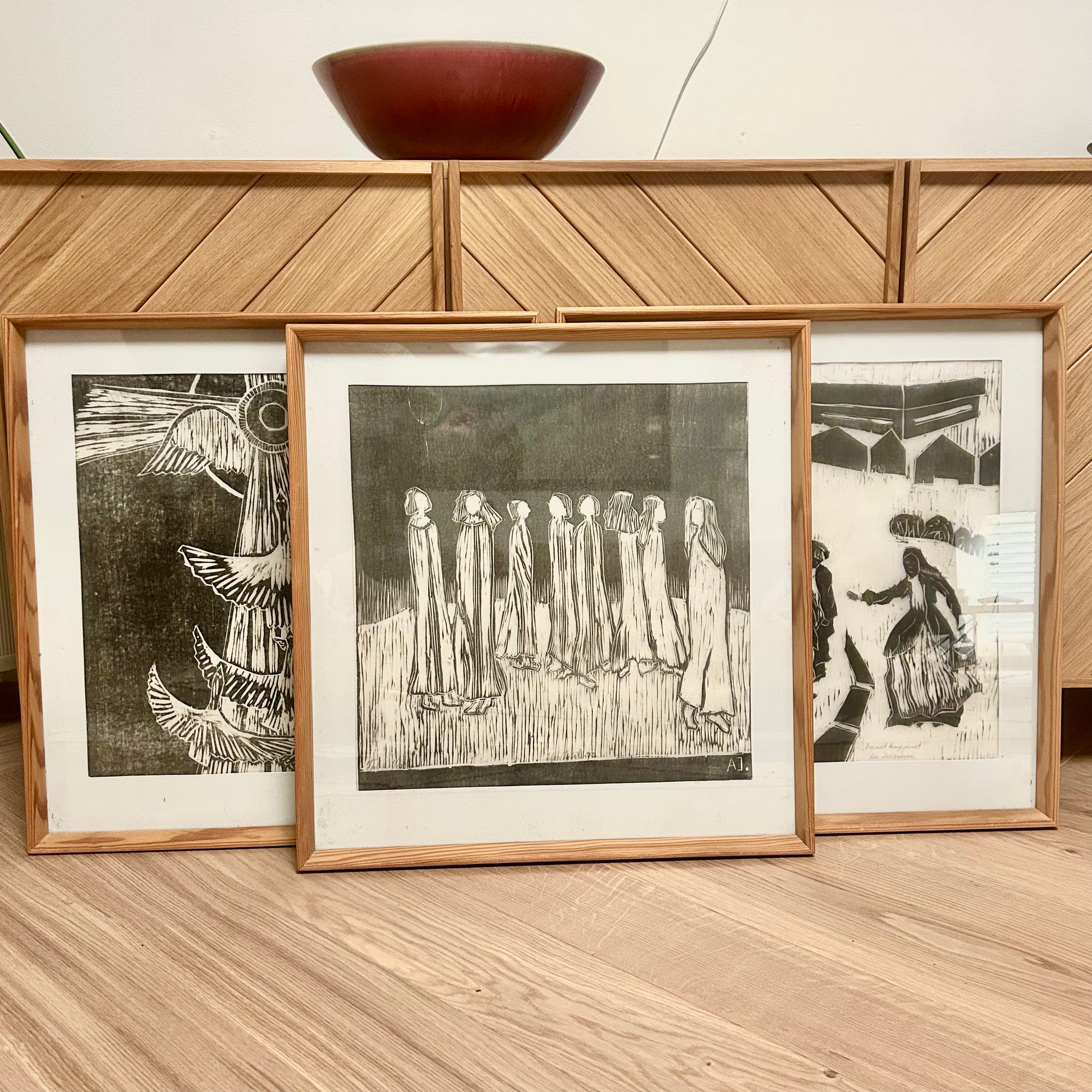 Three framed graphic sheets by Aili Hiukka-Iivarinen